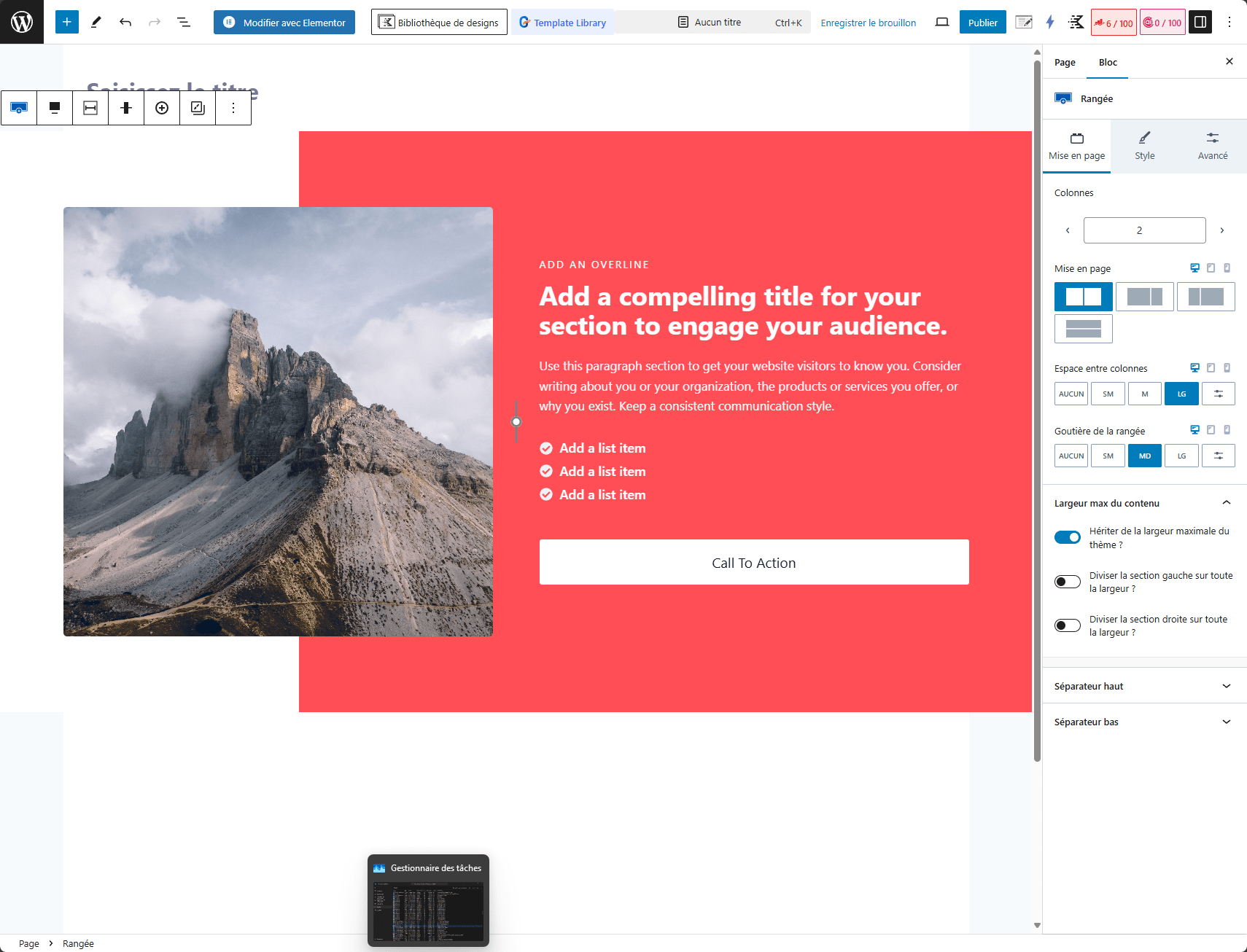 nous croyons en l’importance de fournir à nos clients des outils puissants et flexibles pour créer et gérer leur site web. C’est pourquoi nous avons adopté une approche hybride, en tirant parti des avantages de deux des éditeurs les plus populaires de WordPress : l’éditeur Gutenberg de WordPress et Elemento
