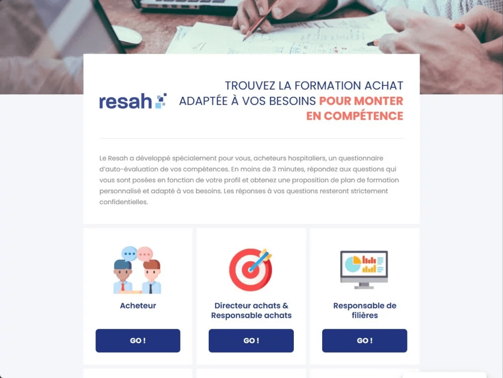 Développement d’un questionnaire d’auto-évaluation des compétences pour les acheteurs hospitaliers, permettant d’obtenir un plan de formation personnalisé.